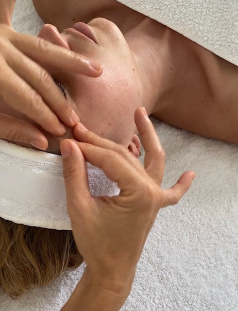La praticienne évolue avec des mouvements fluides plus ou moins appuyés, une crème ou de l’huile végétale adaptée au soin du visage, est utilisée au cours du massage. Quand le massage se fait plus profond, les modelages et pétrissages profitent aux muscles qui se raffermissent, le massage s’étend au cou, au décolleté, à la nuque, aux épaules, aux bras et aux mains.